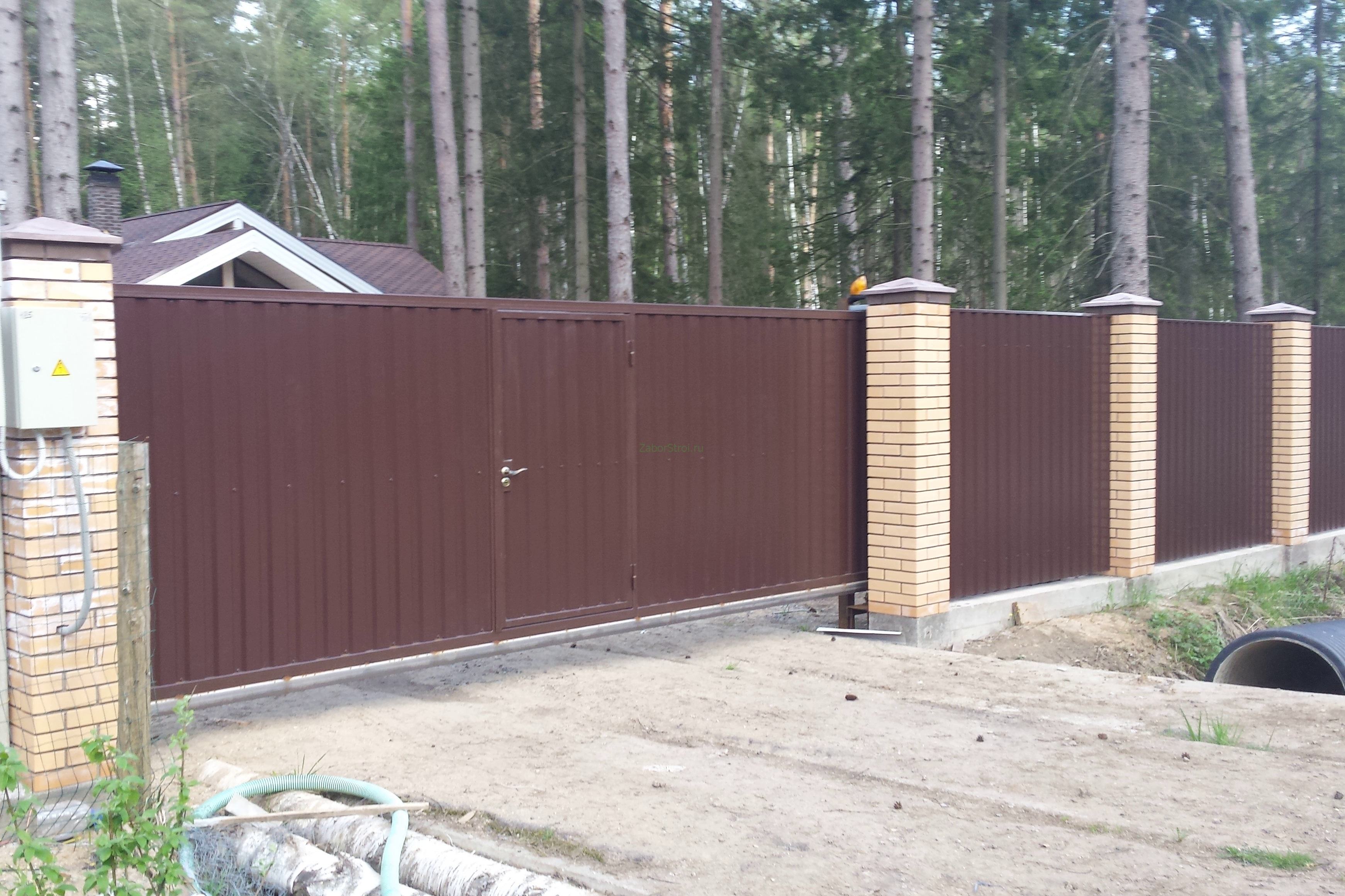 Откатные ворота из профнастила на винтовых сваях (цена на бетонном основании +20000р)